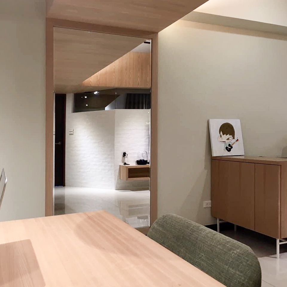 前屋主的室內隔間有些問題,導致動線不良,所以我們還是決定重新調整空間結構。且因為室內坪數並不大,我們希望視線可以盡量穿透,但還是應該要保持臥室應該有的隱密性與私密性。室內選材與配色讓它可以清爽,並保有年輕感。